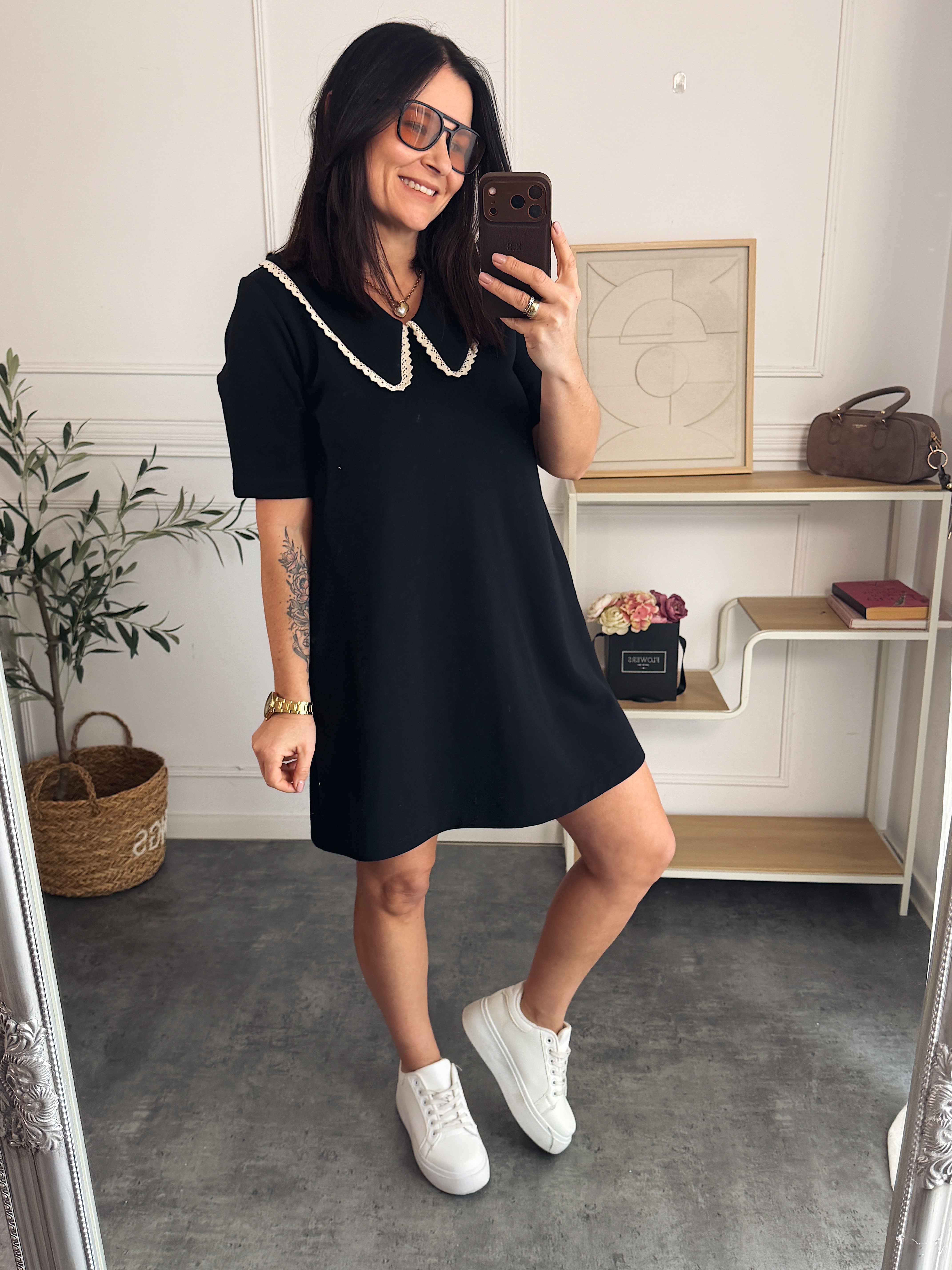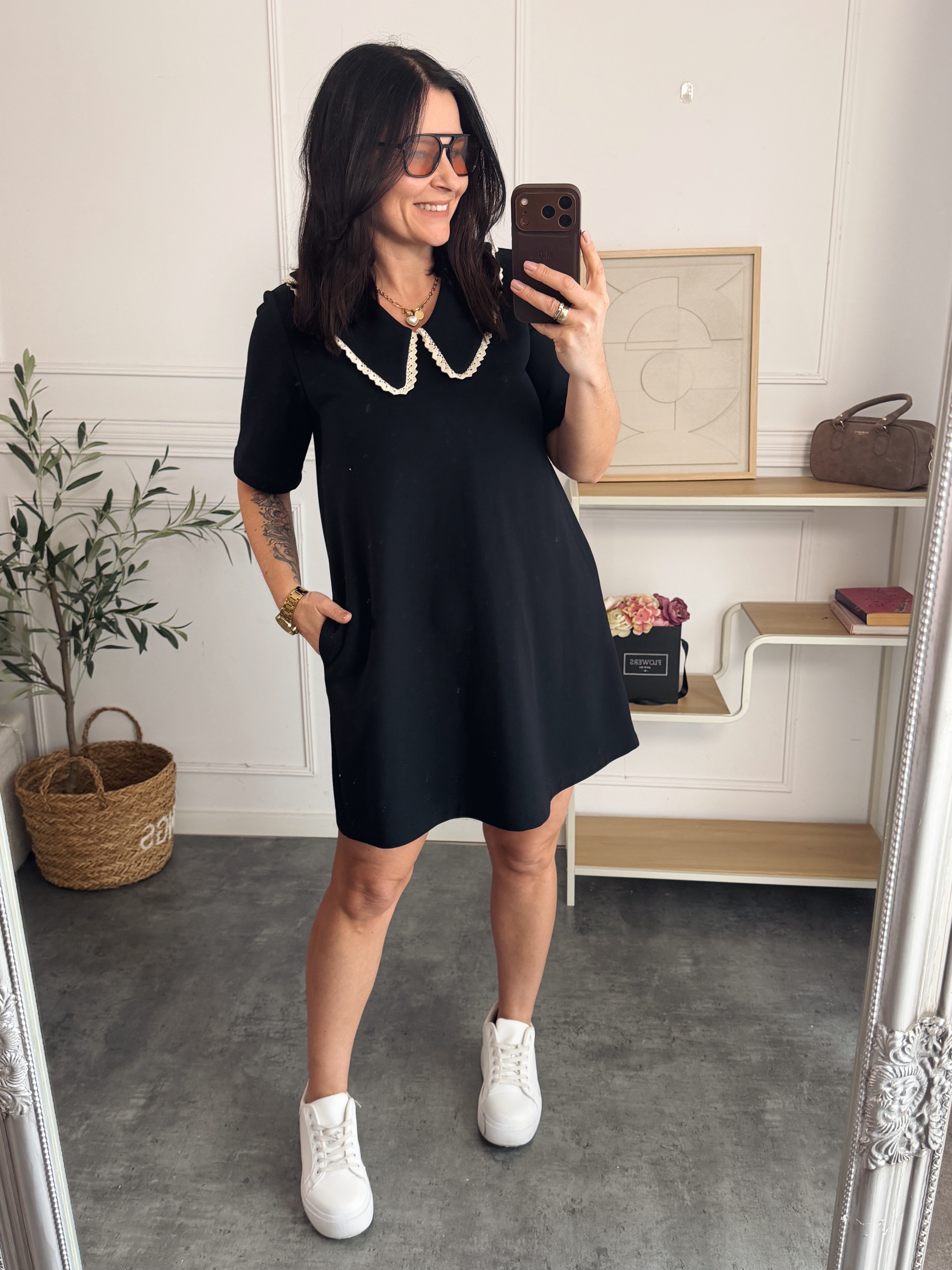 Sukienka wykonana z grubszej dresówki pętelki - posiada kieszenie , delikatna literka A z najmodniejszym w tym soznie kołnierzykiem.