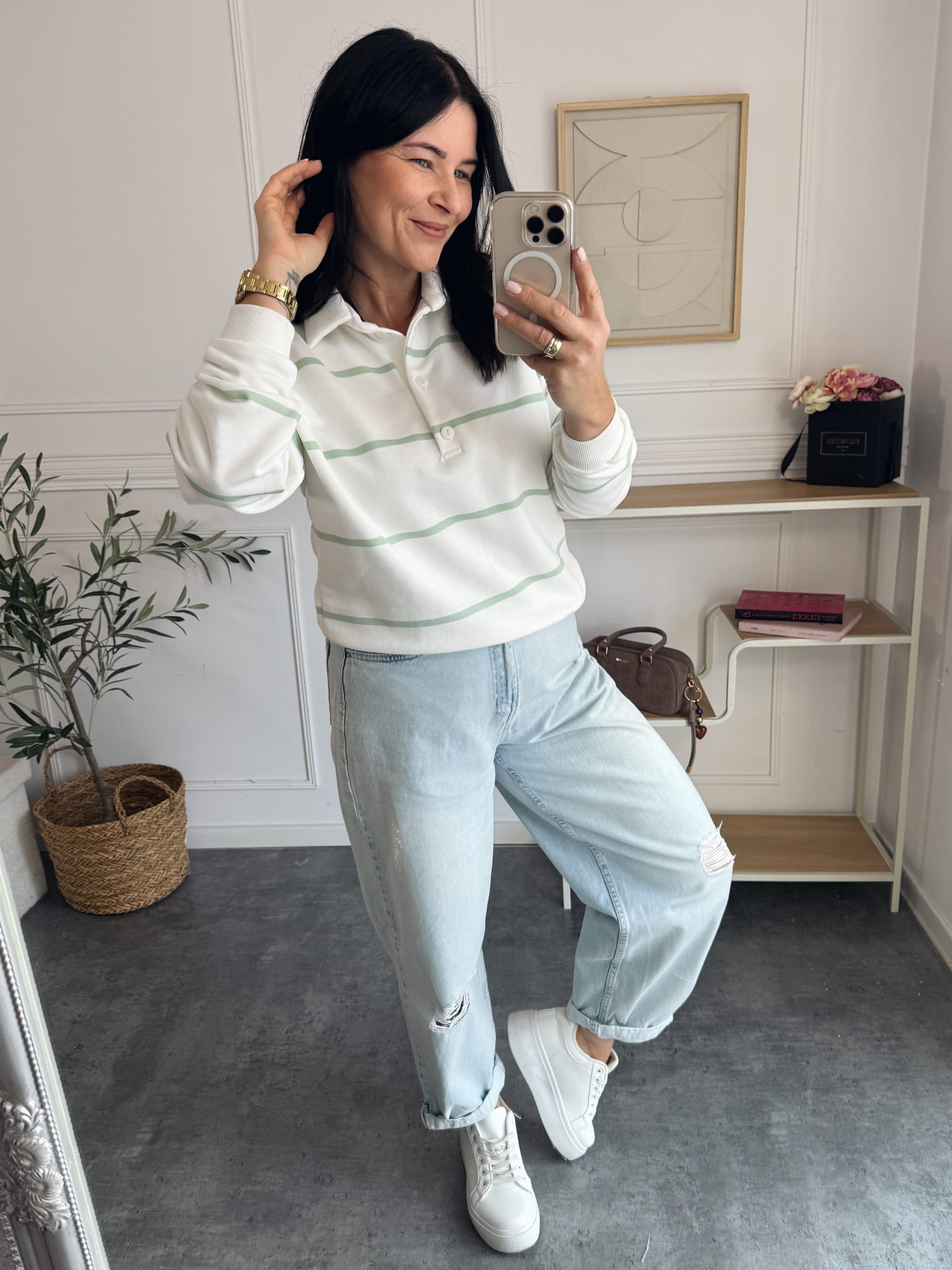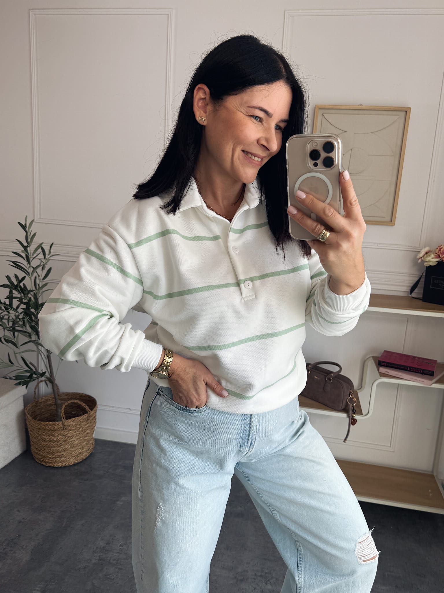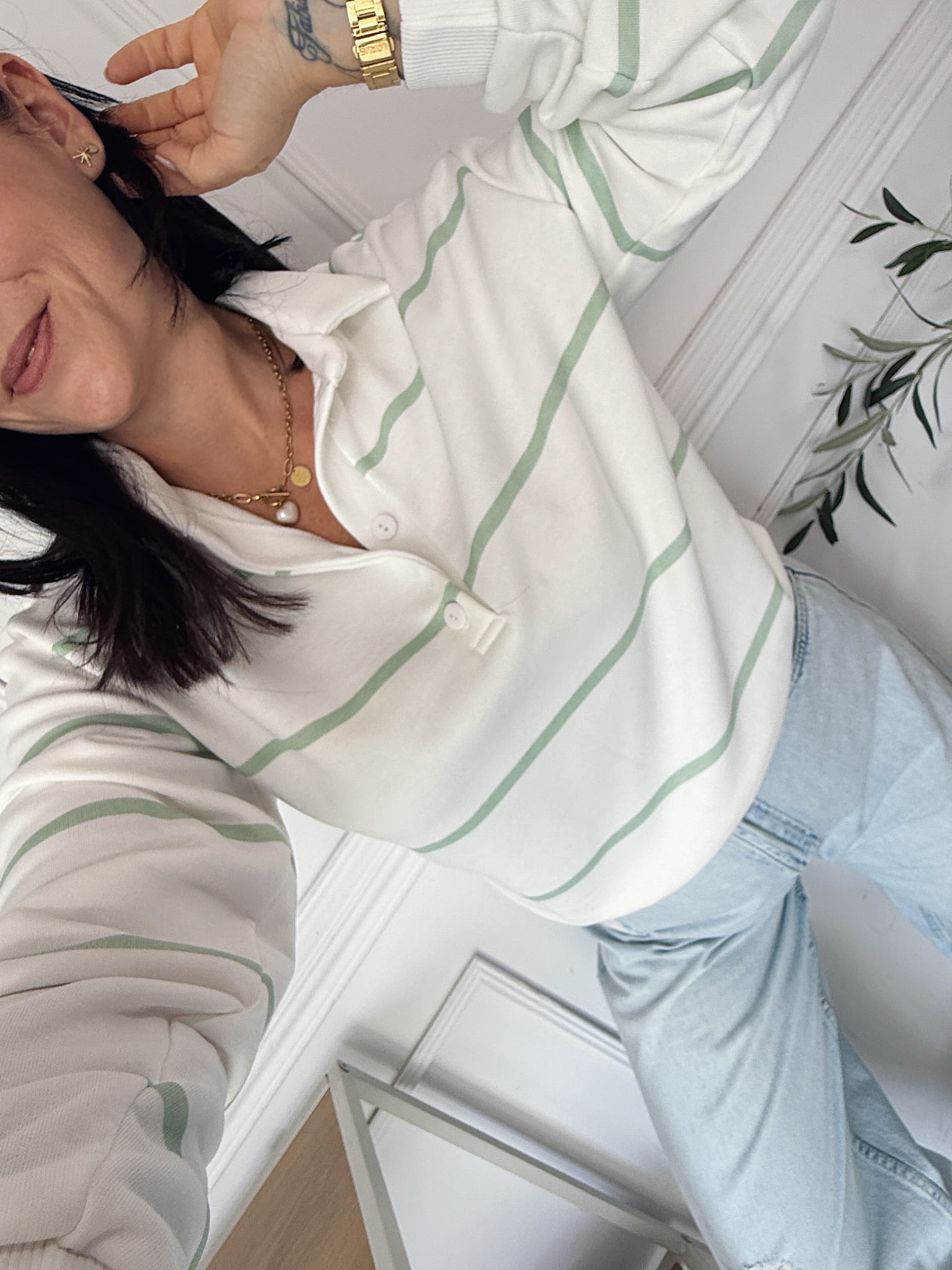 Bluza Polo Paski Pistacja