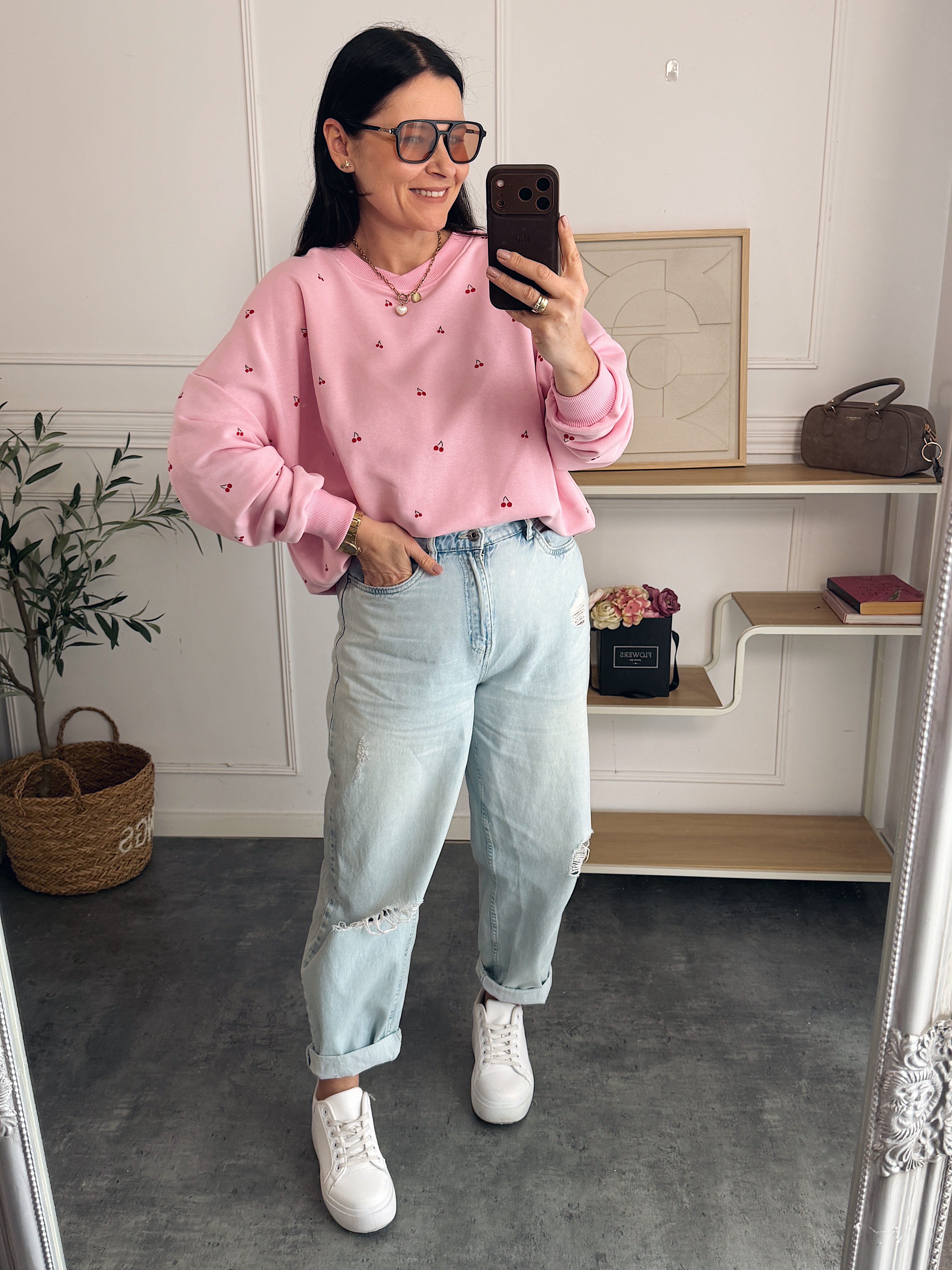 Przepiękna bluza o świetnym kroju z nadrukiem w wisieńki.