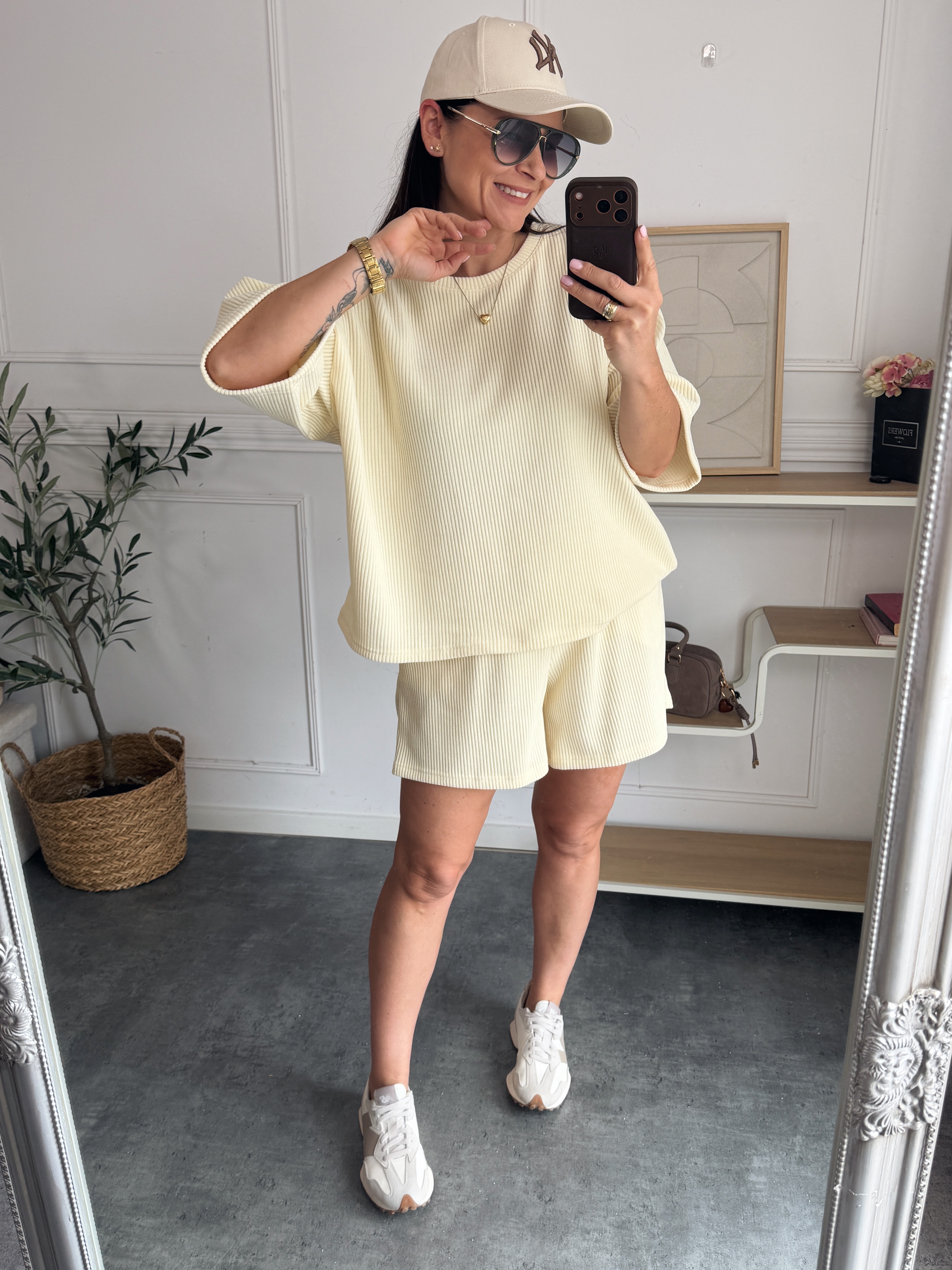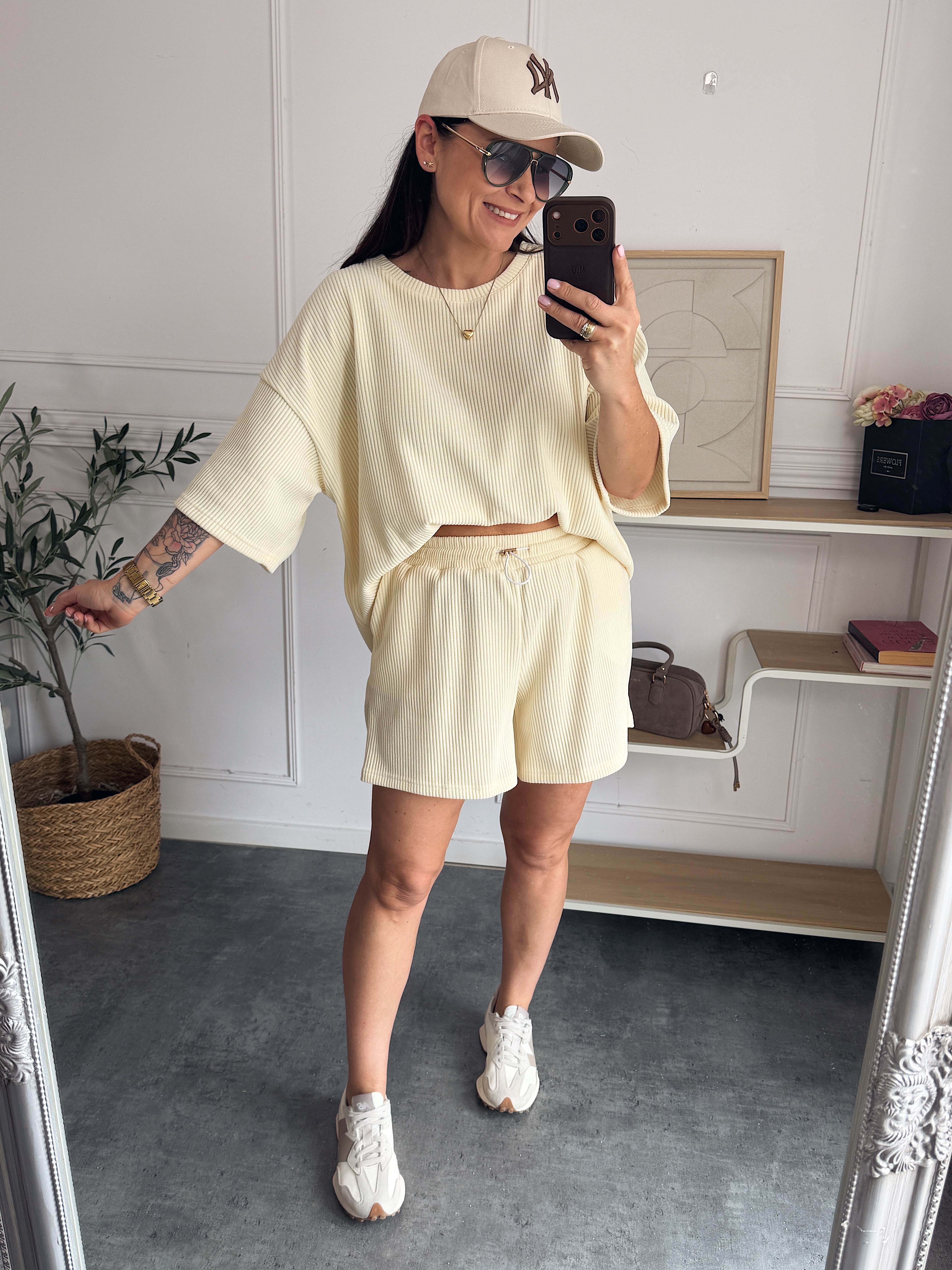 Genialny komplet: spodenki o lużnym fasonie plus bluza wykonane z mięciutkiego sztruksu.