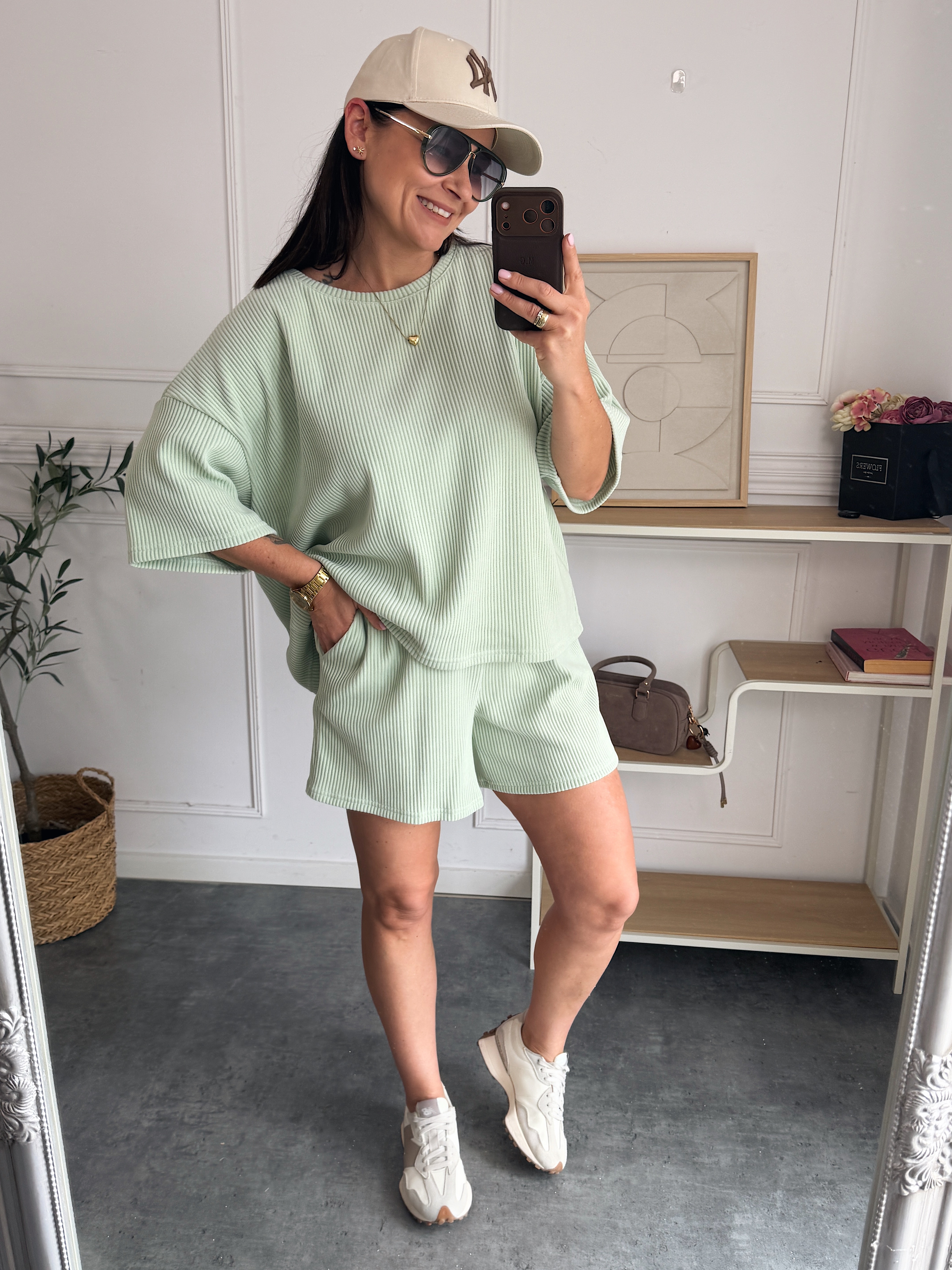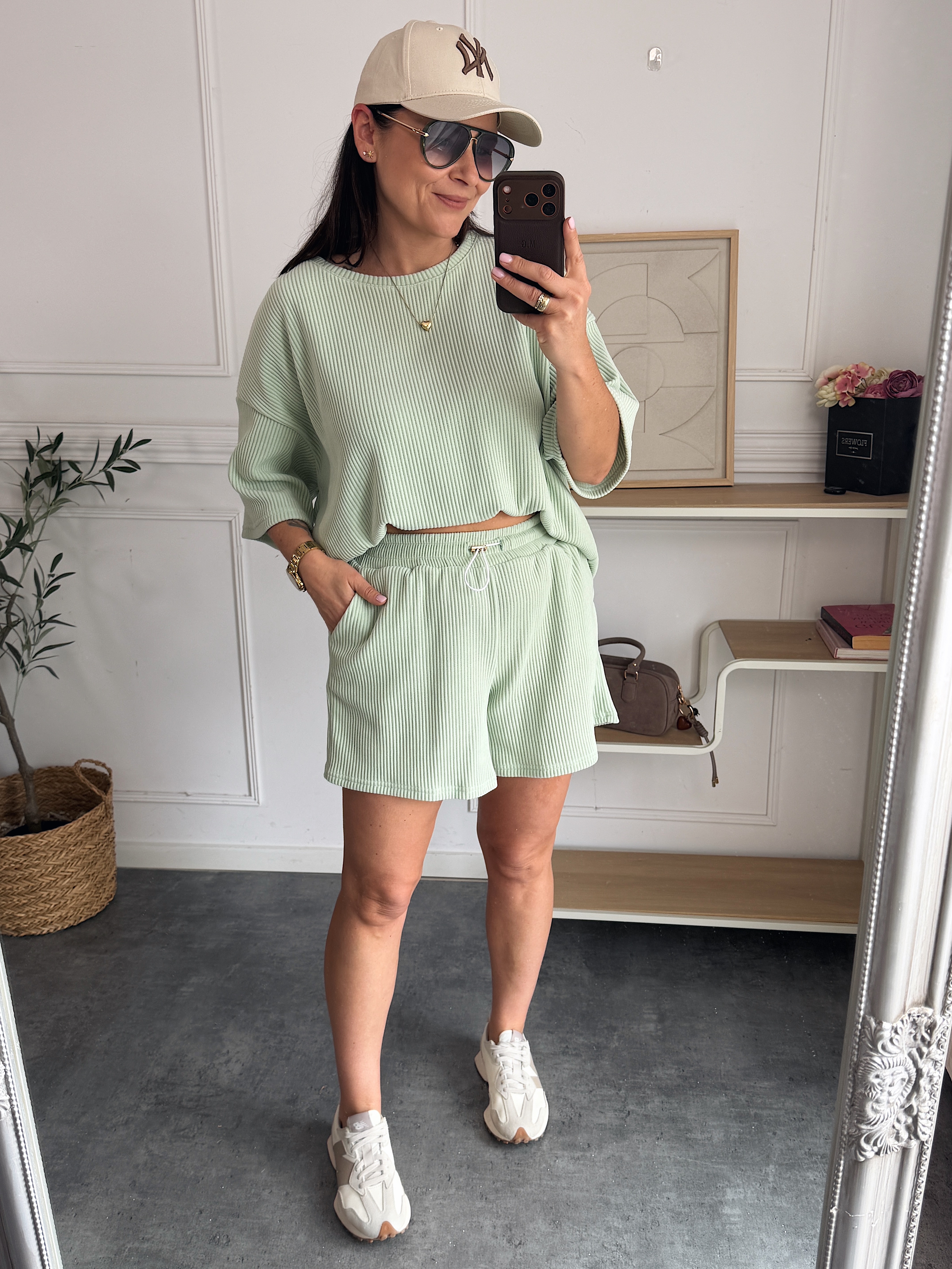 Genialny komplet: spodenki o lużnym fasonie plus bluza wykonane z mięciutkiego sztruksu.