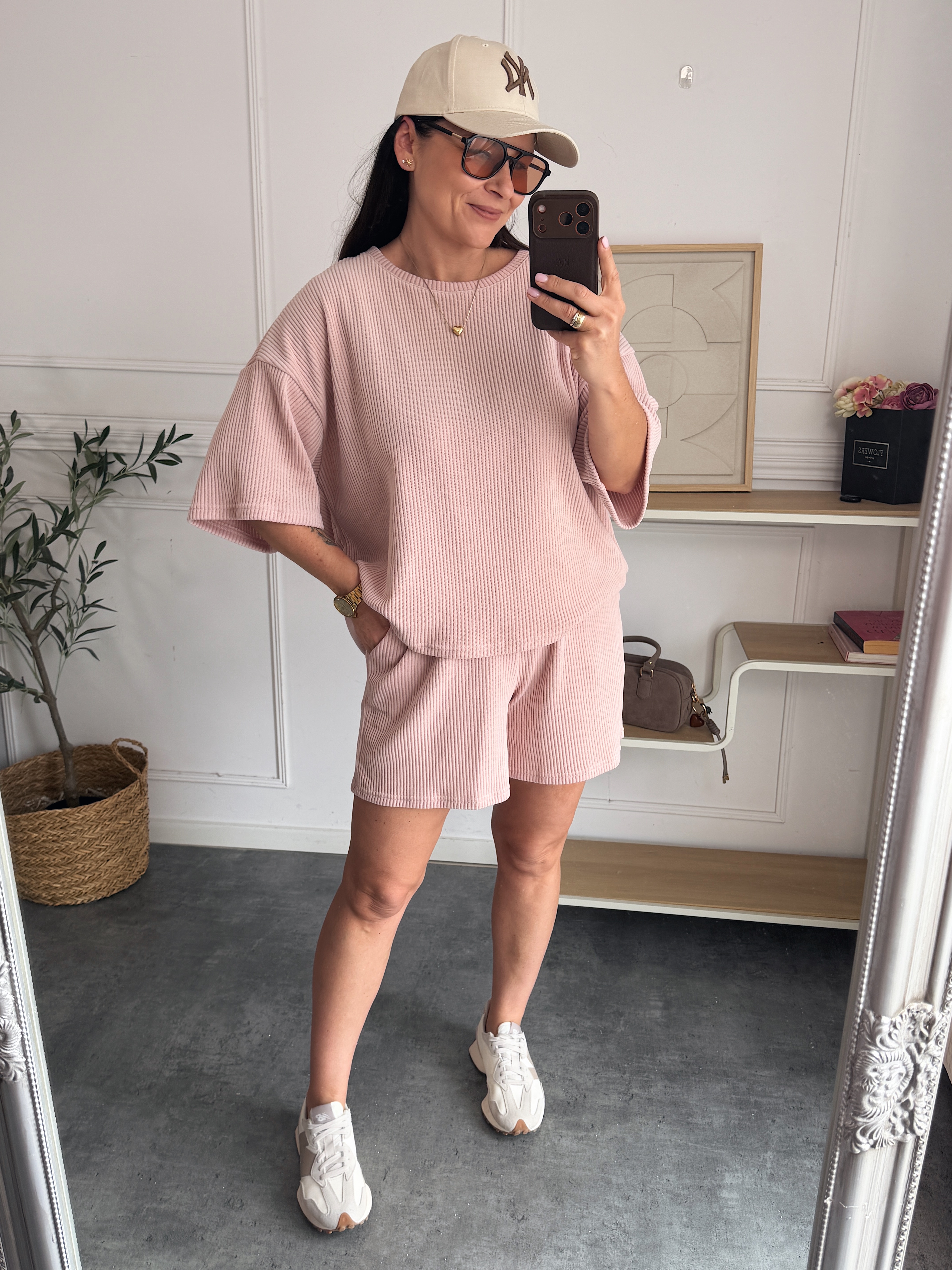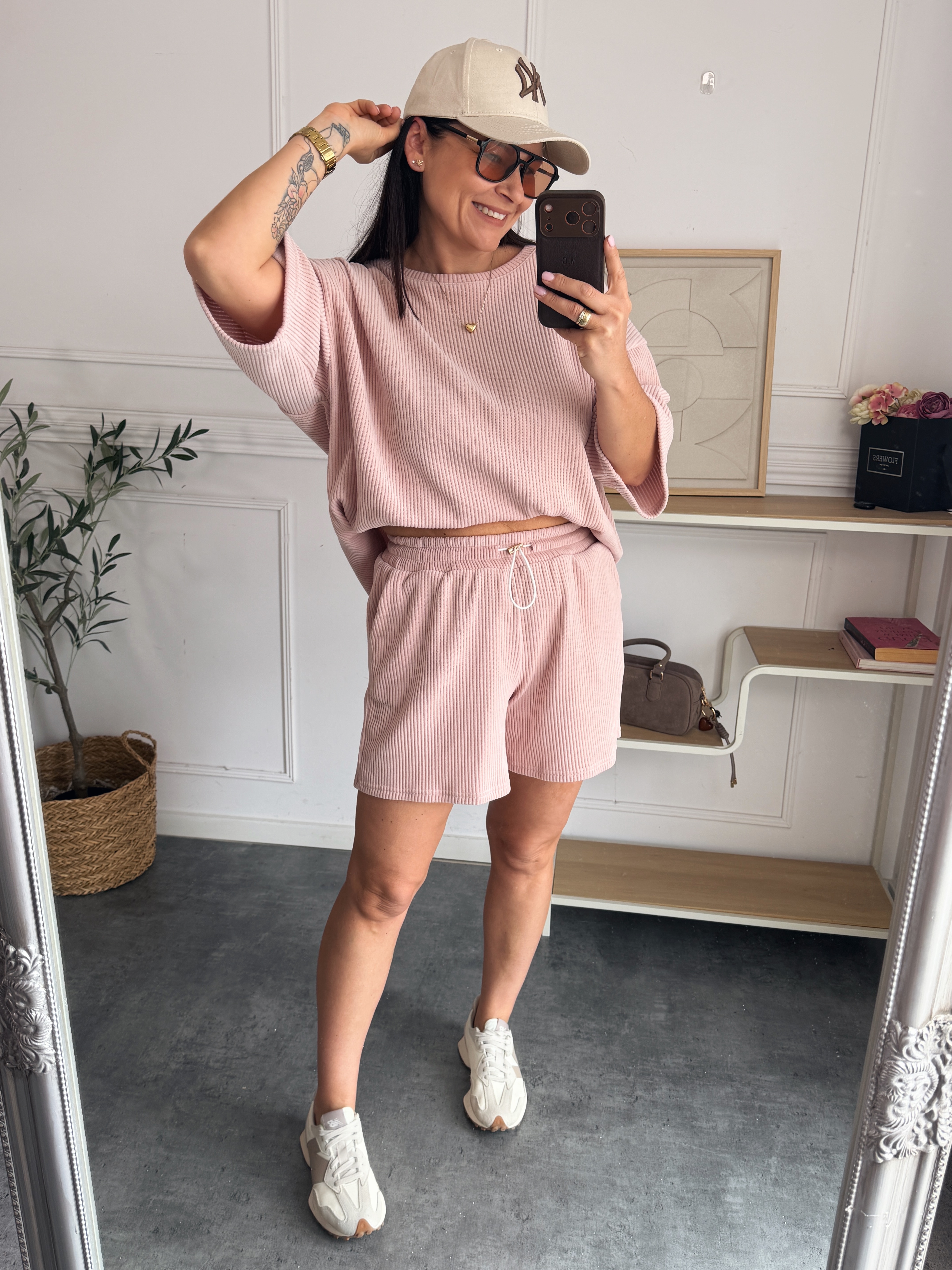 Genialny komplet: spodenki o lużnym fasonie plus bluza wykonane z mięciutkiego sztruksu.