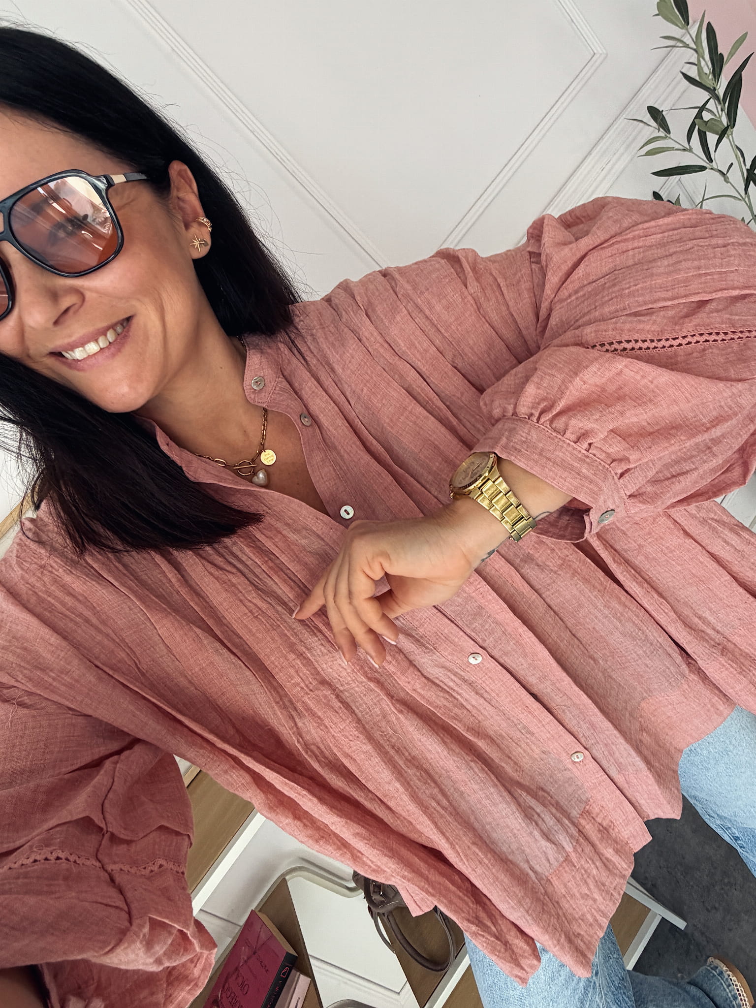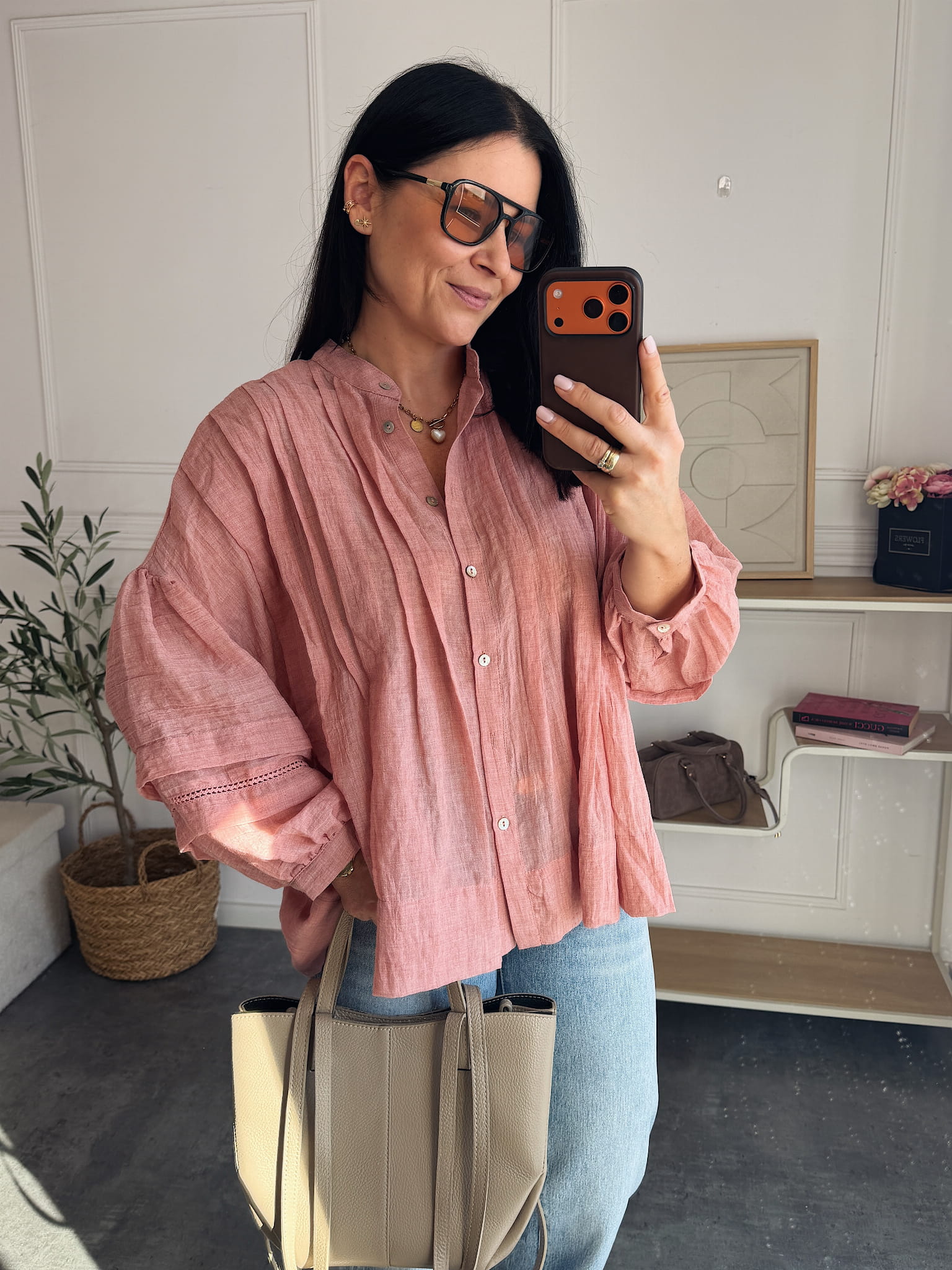 Koszula jest wykonana z miękkiej bawełny o naturalnym, przewiewnym charakterze. Fason jest oversize, dzięki czemu swobodnie opada na sylwetkę, tworząc luźną, nowoczesną linię.