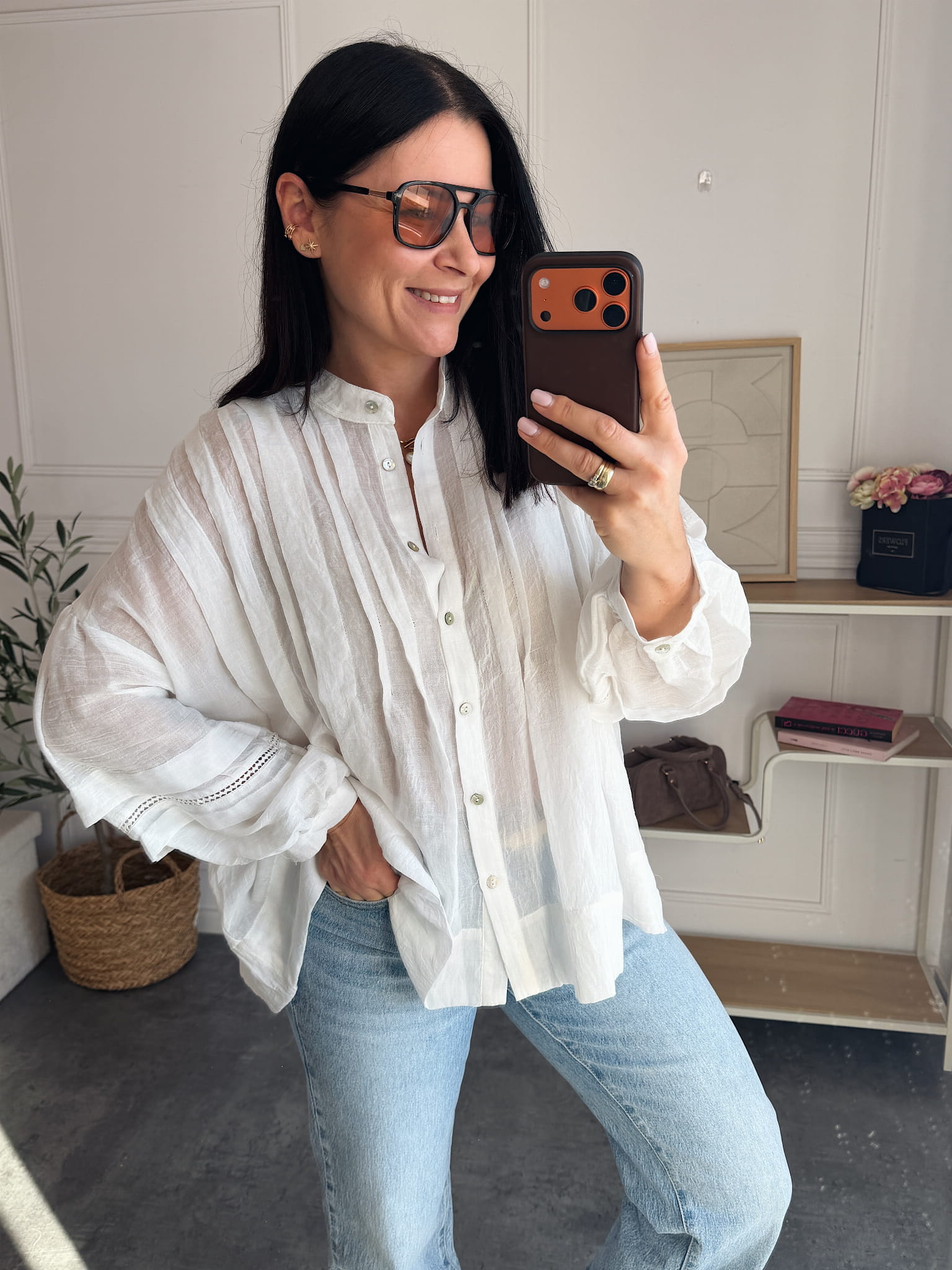 Koszula jest wykonana z miękkiej bawełny o naturalnym, przewiewnym charakterze. Fason jest oversize, dzięki czemu swobodnie opada na sylwetkę, tworząc luźną, nowoczesną linię.