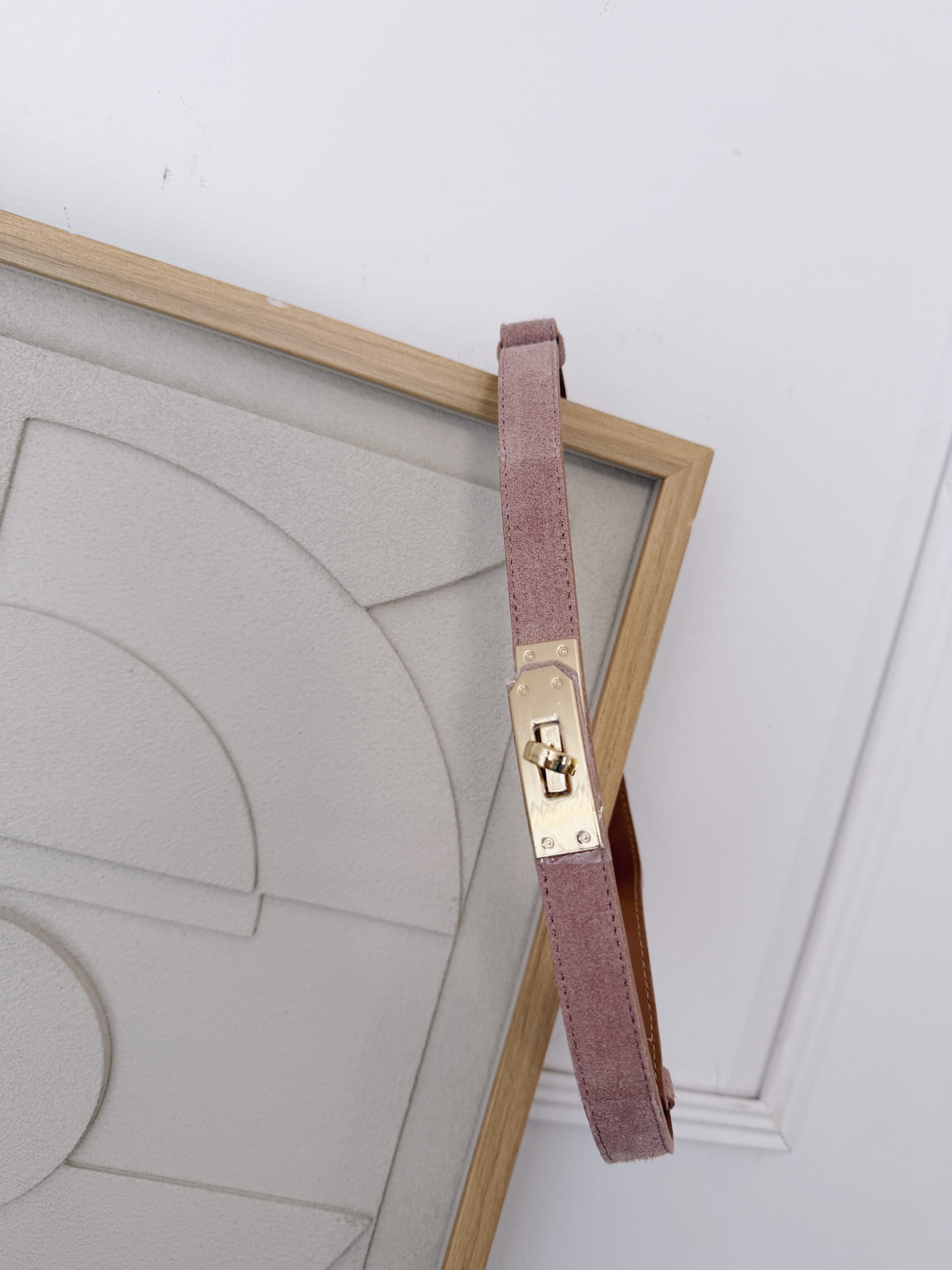 Pasek Herm skóra zamszowa naturalna Pudrowy
