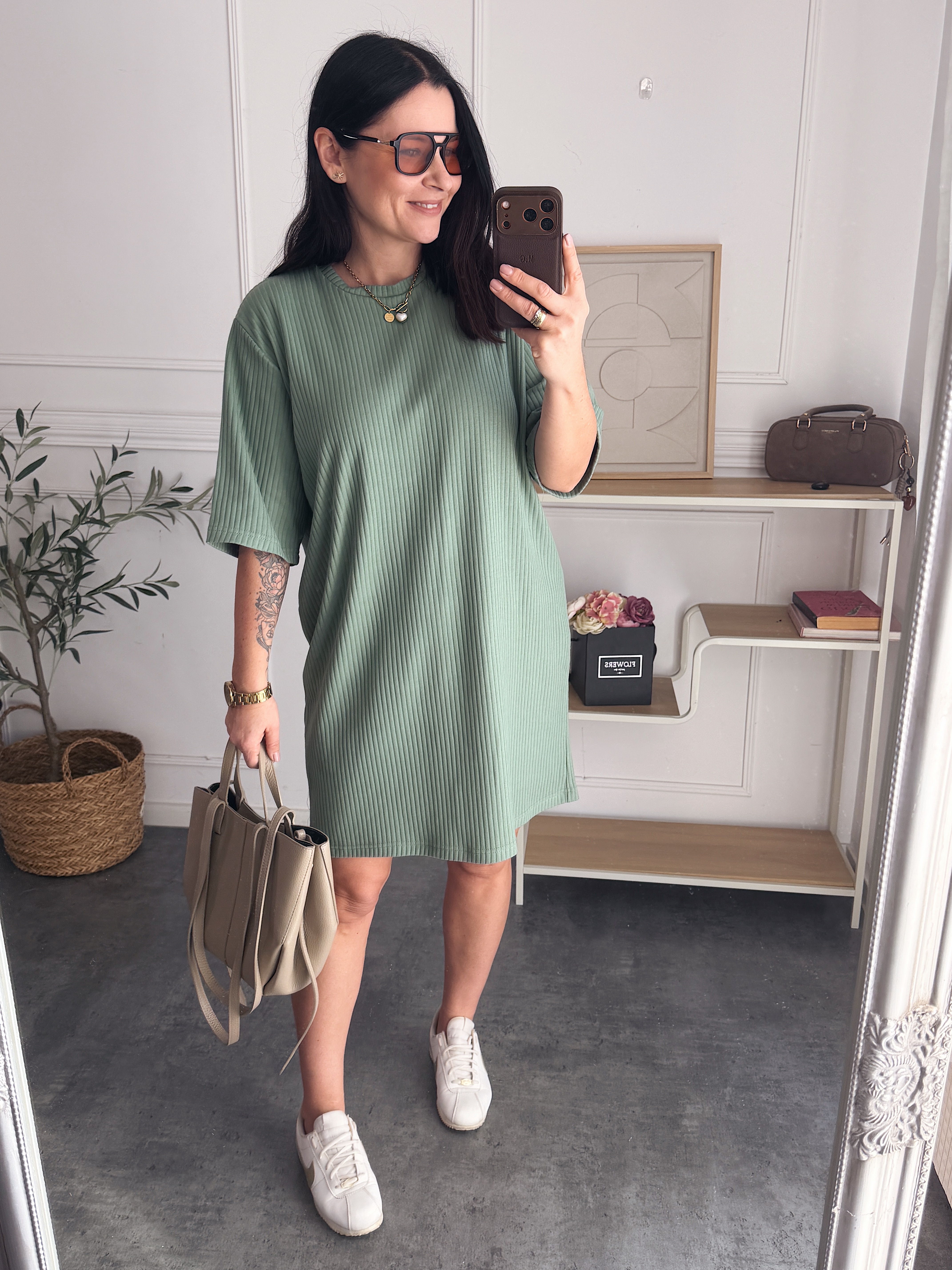 Wykonana z prążkowanego materiału, pięknie układa się na sylwetce i zapewnia komfort noszenia przez cały dzień.