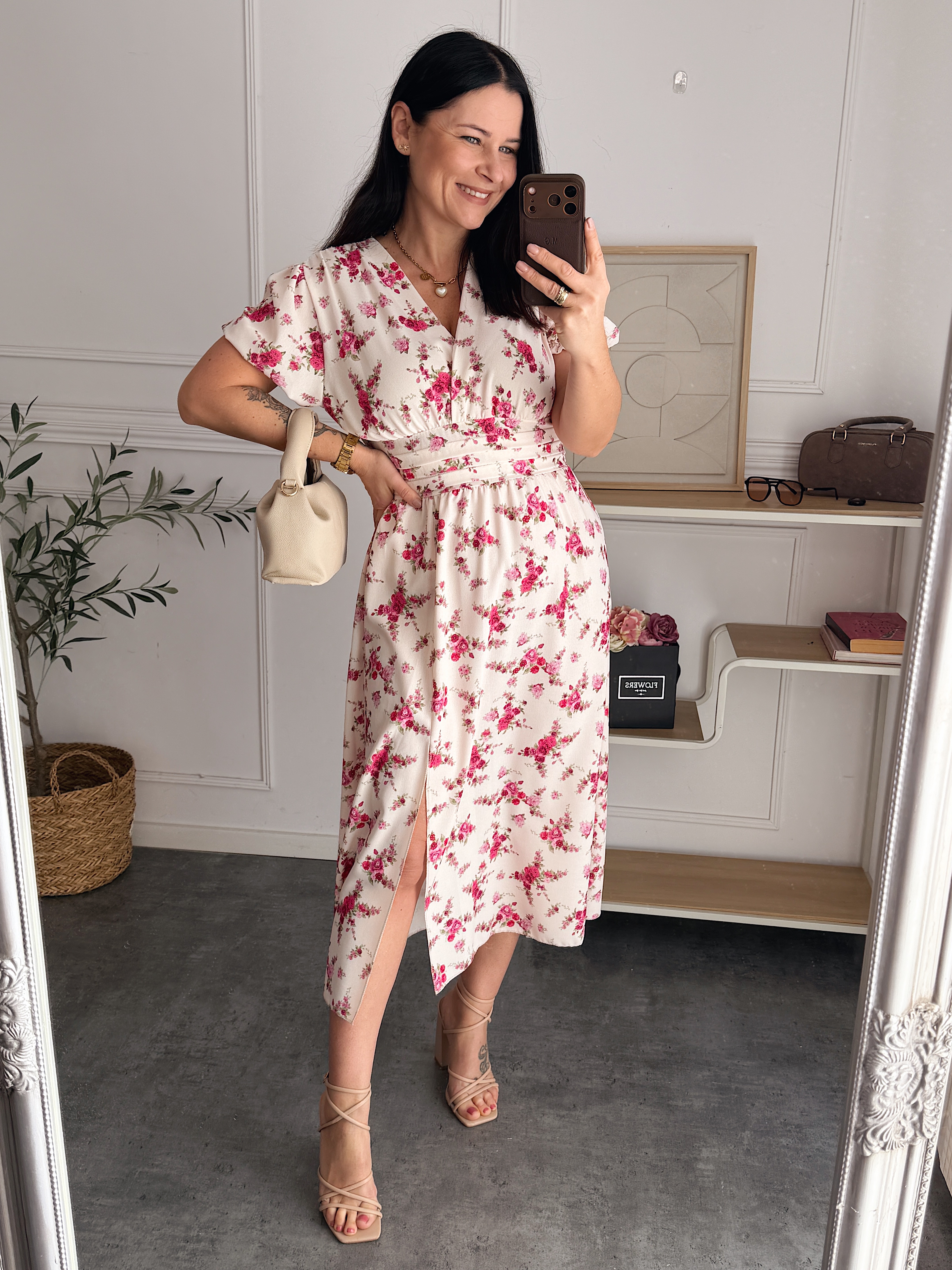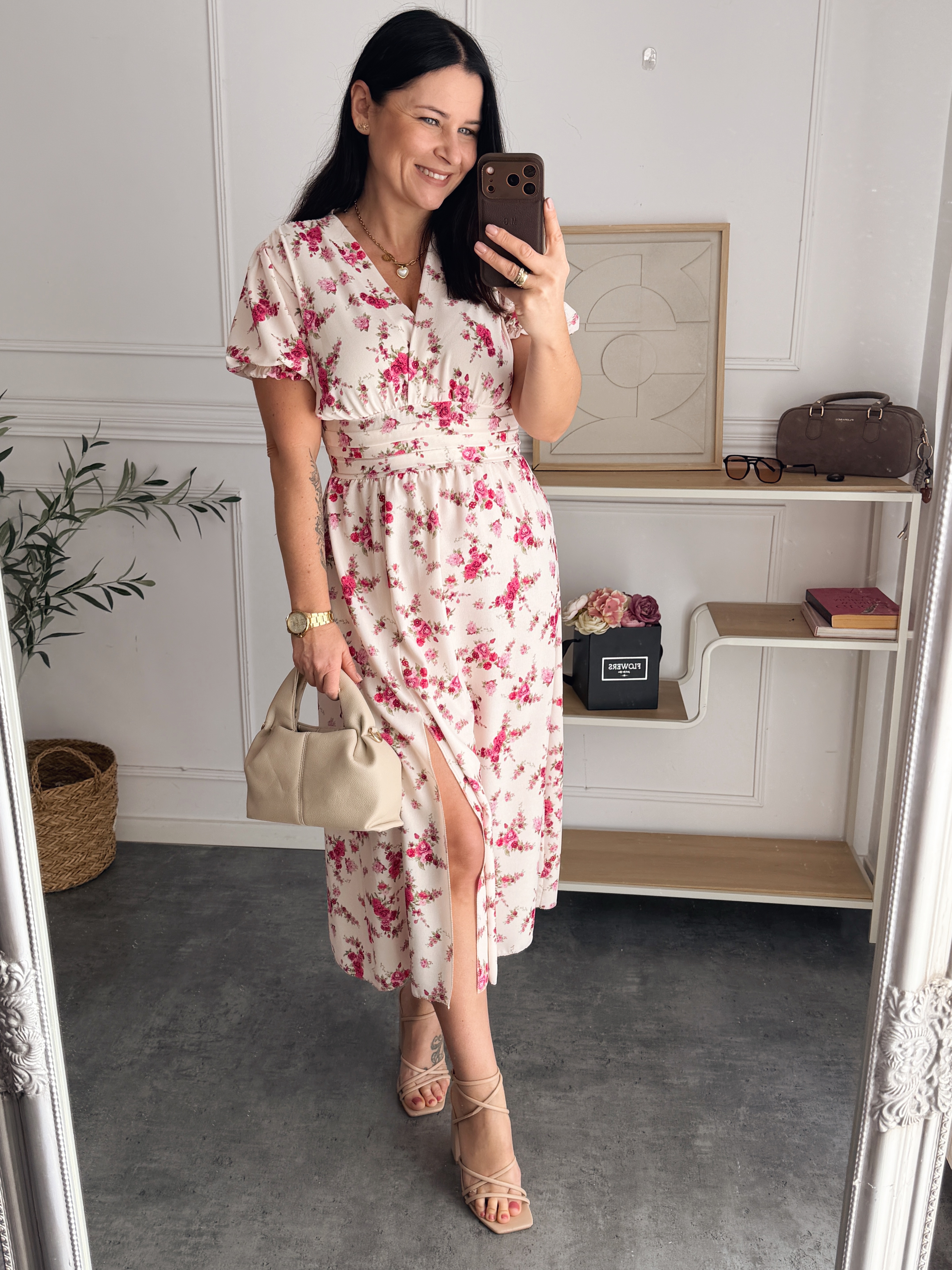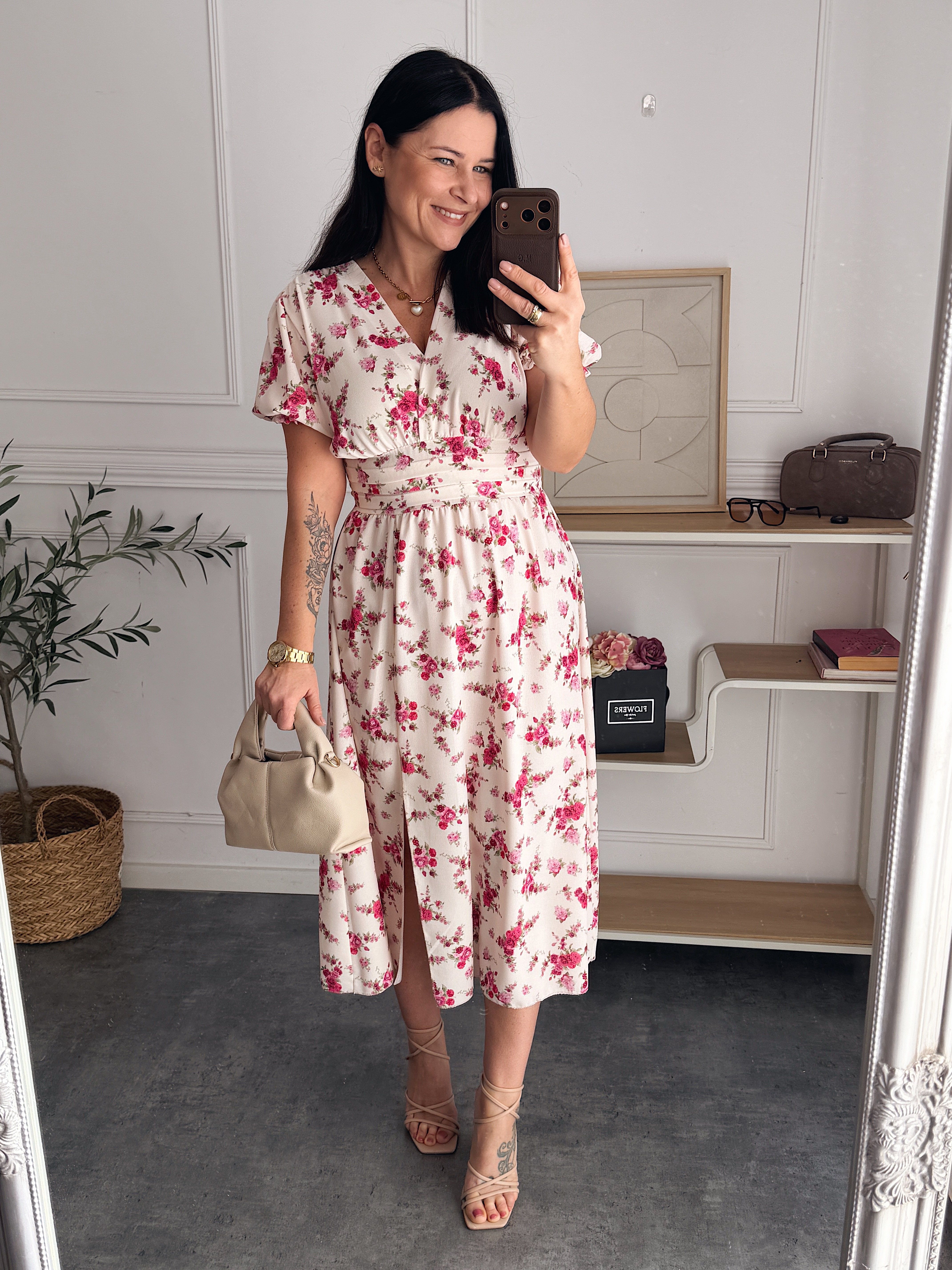 Pre-order Sukienka Rossi Kremowa w różowe kwiatuszki
