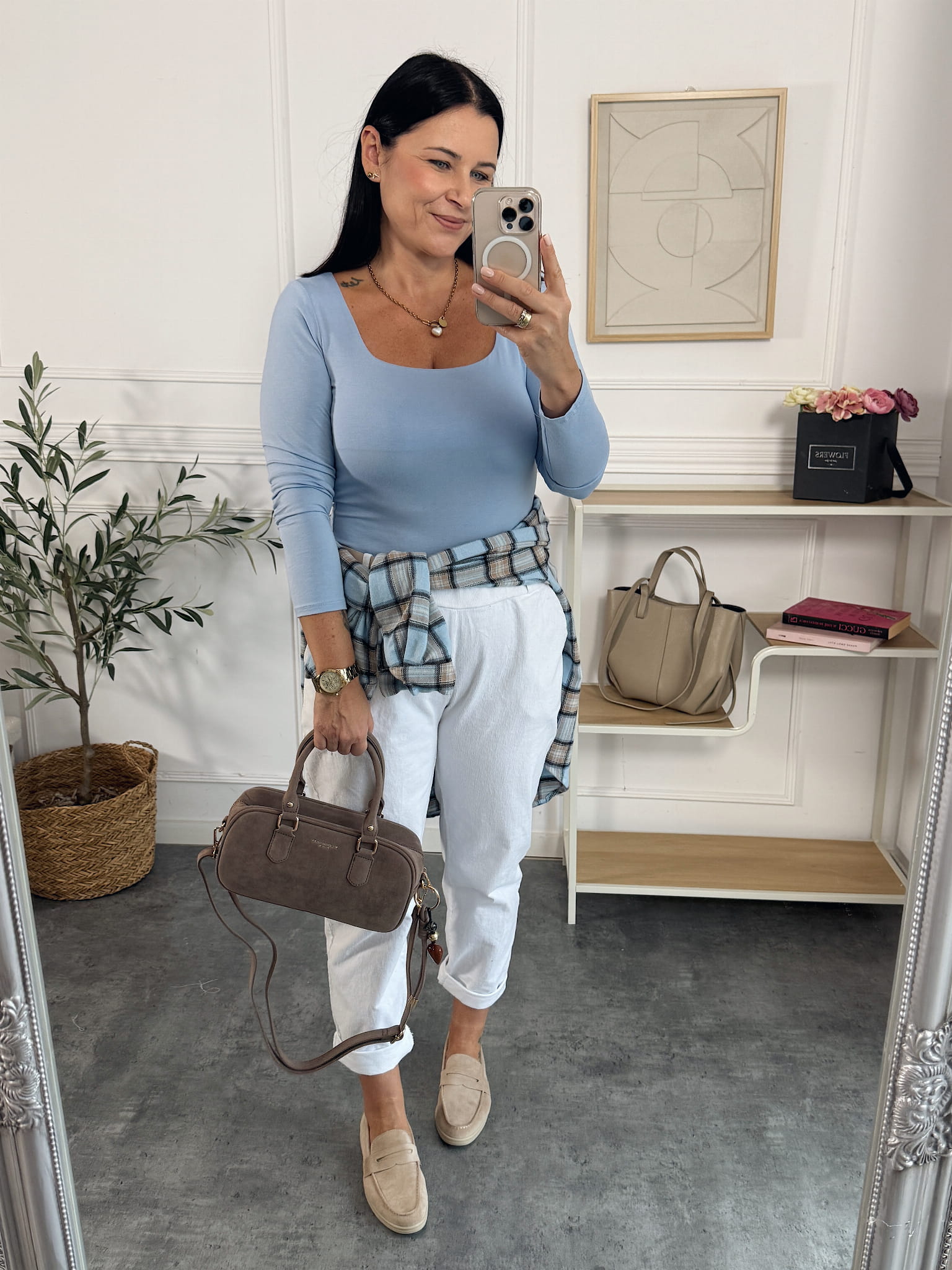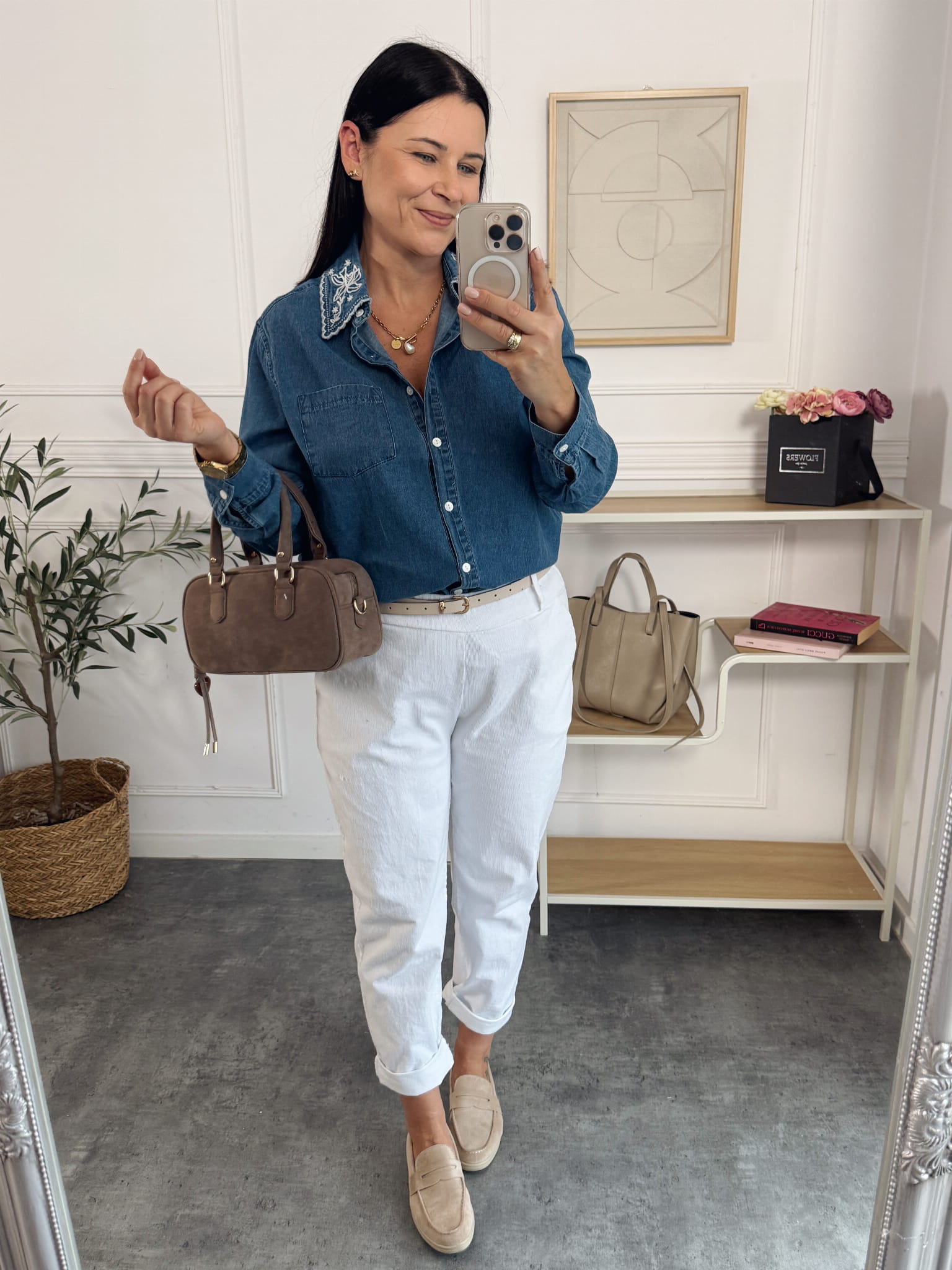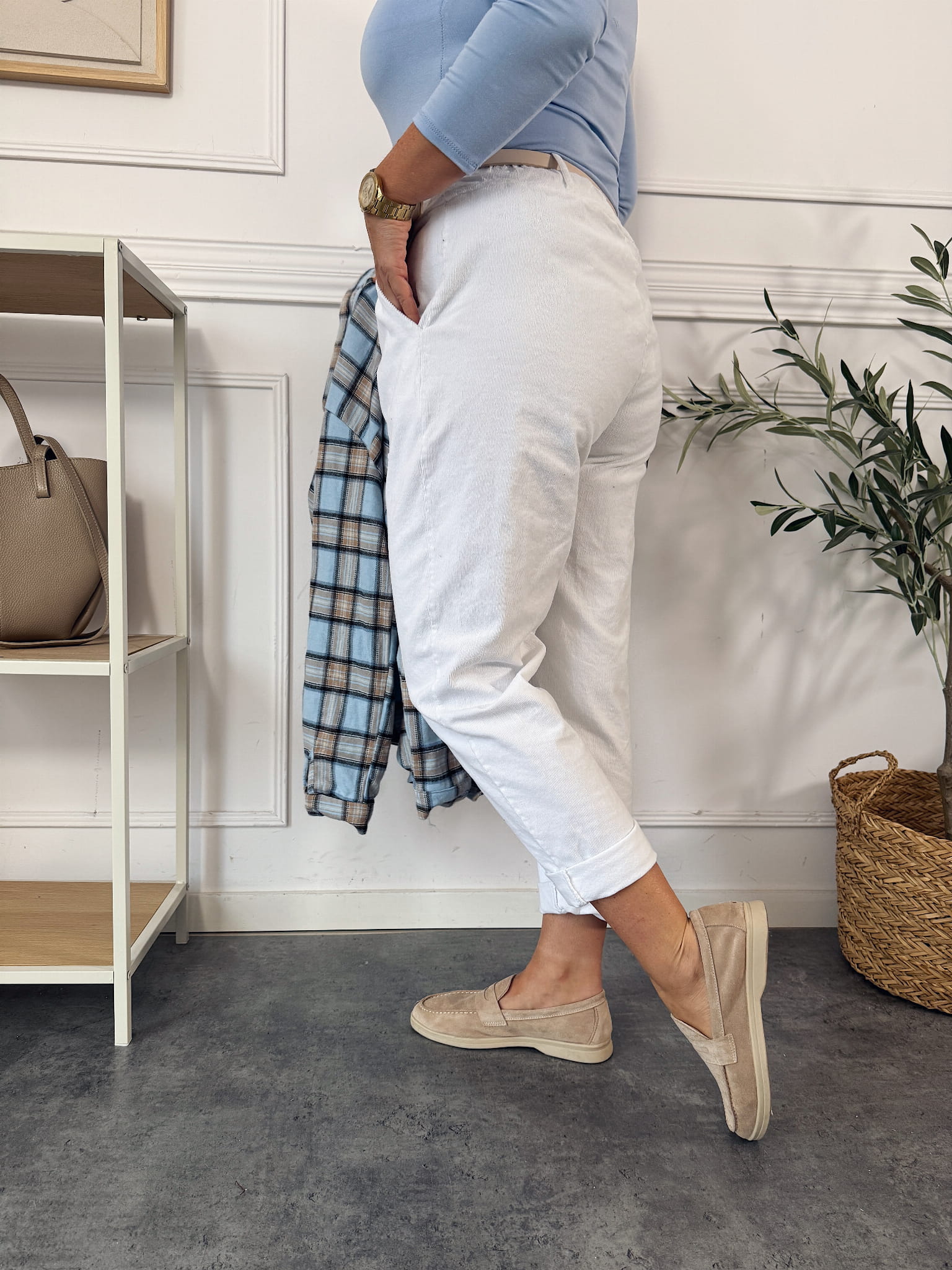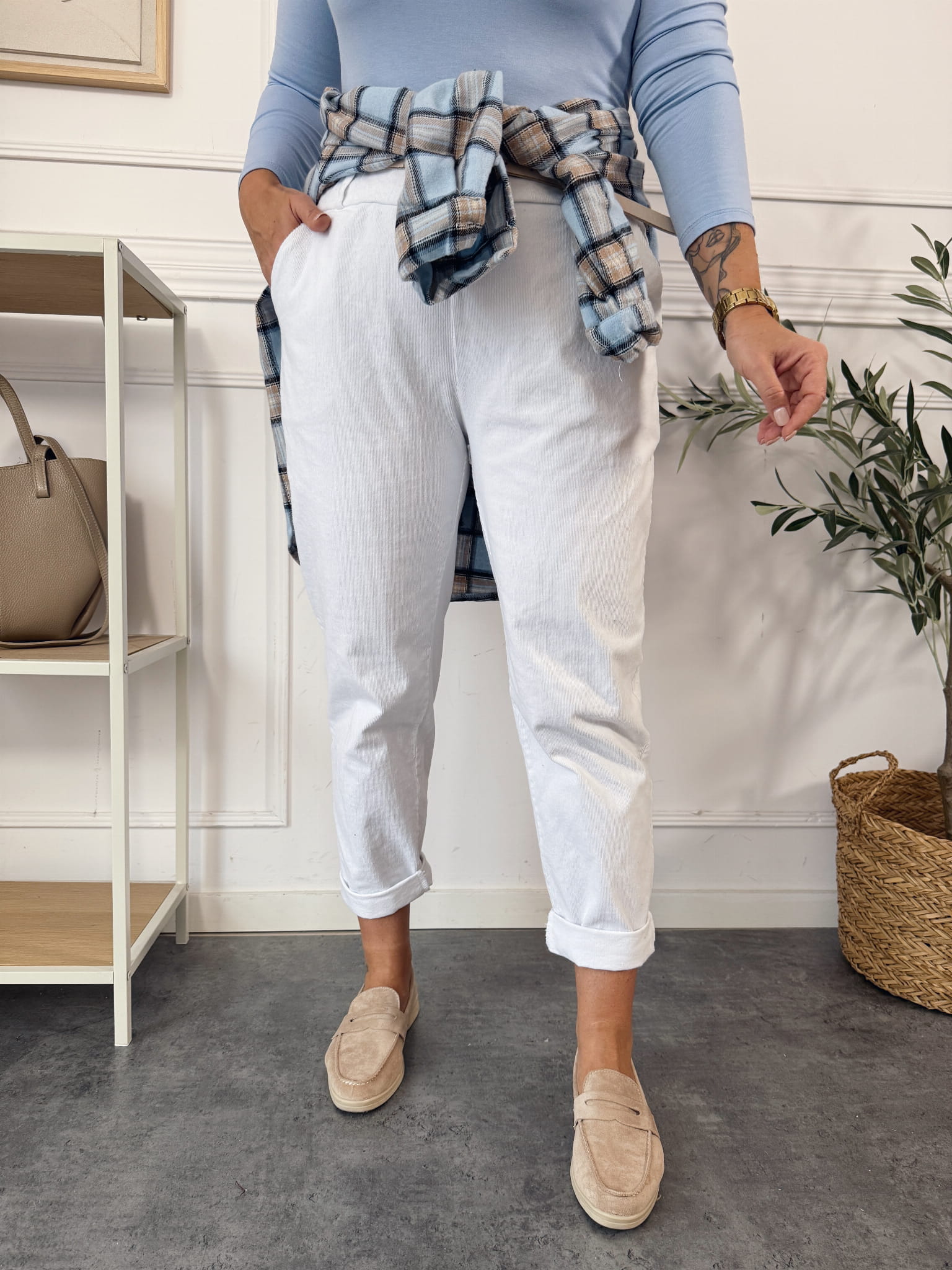 Spodnie fasonie mom fit , wykonane z mięciutkiego sztruksu , na gumce.