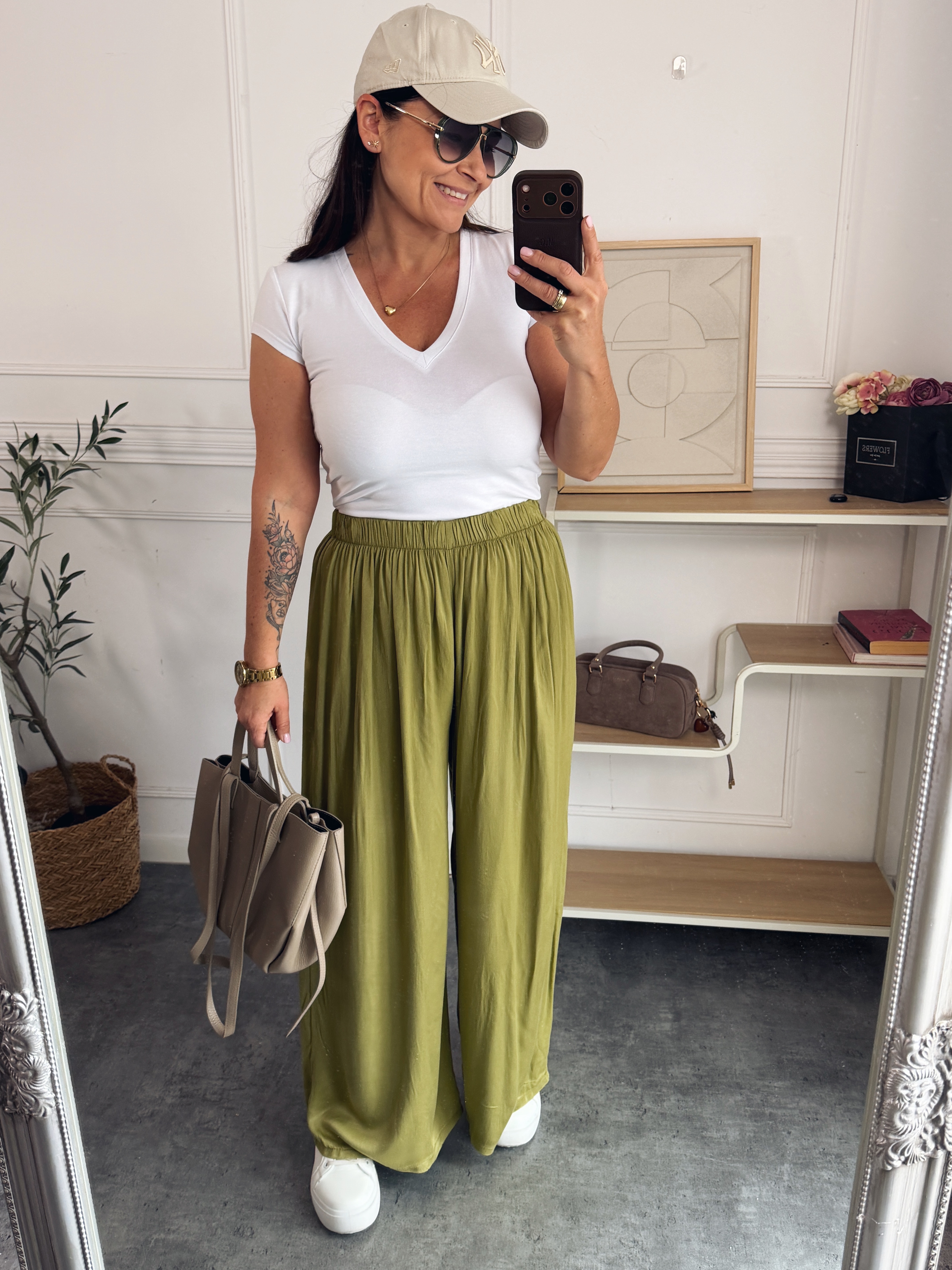 Najmodniejsze spodnie sezonu z szerokimi nogawkami , posiadają gumkę w pasie wykonane z bardzo wygodnego lejącego delikatnego materiału .