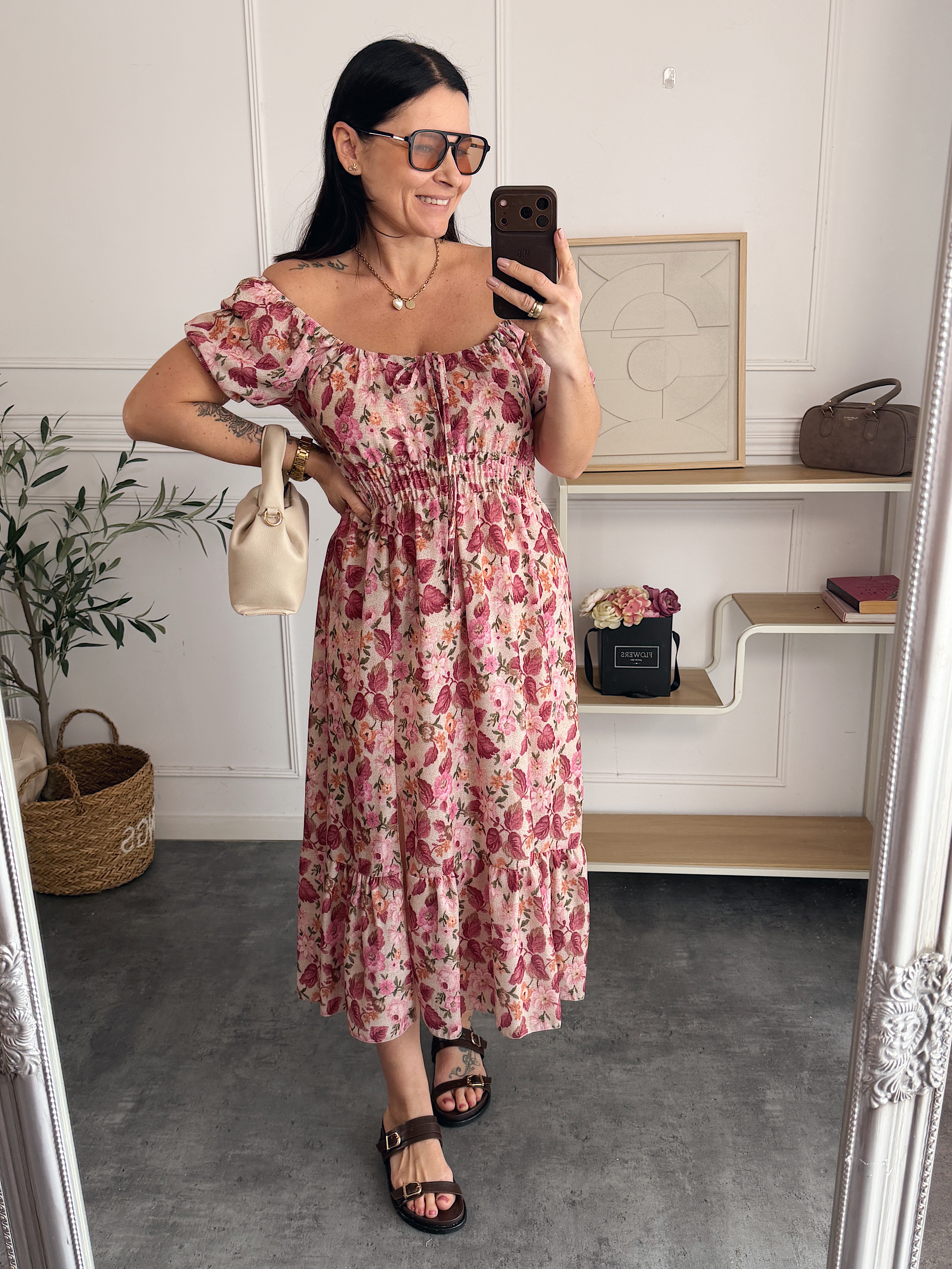 Sukienka Emi Fuksjowo-Różowe Kwiaty