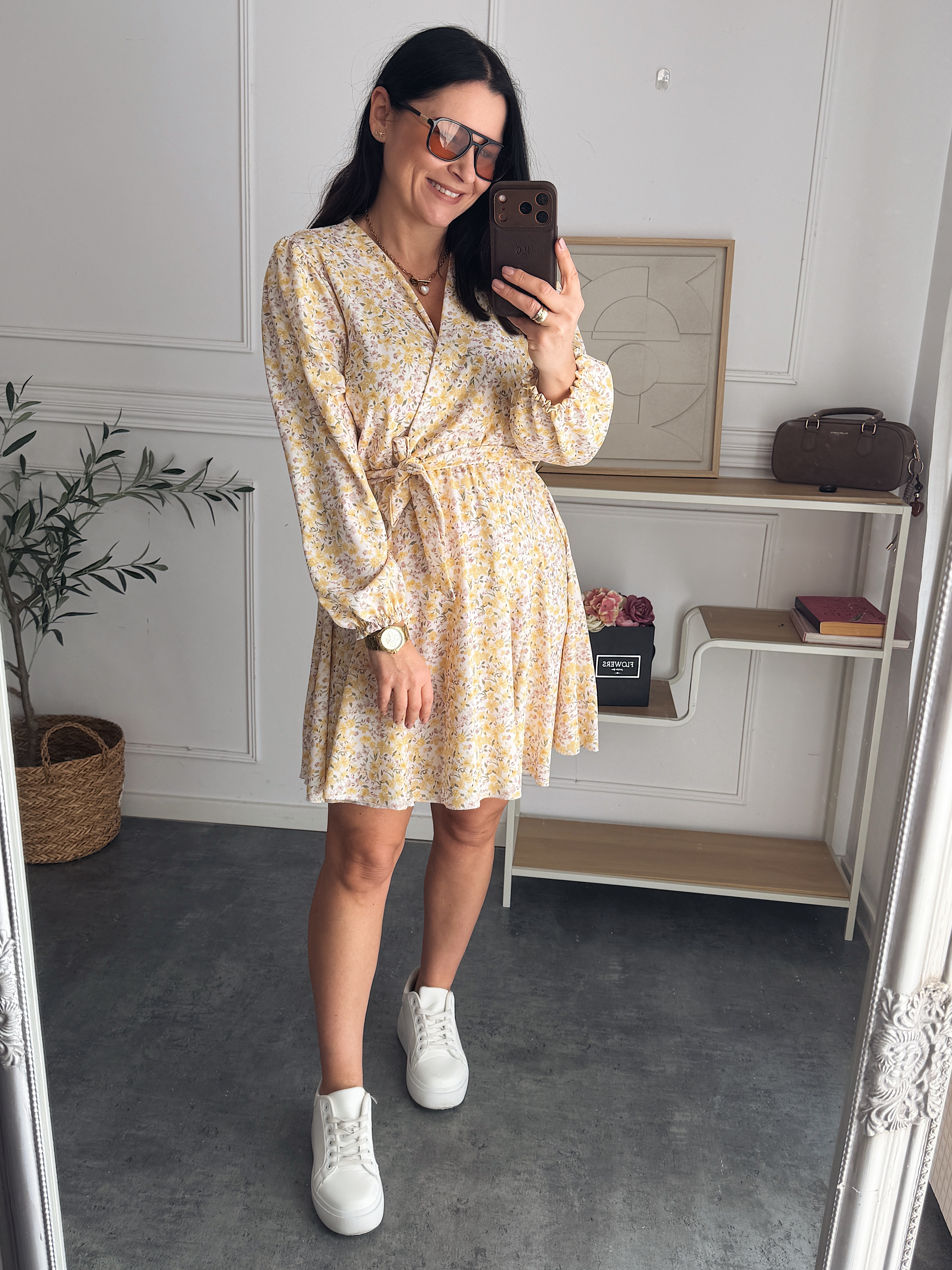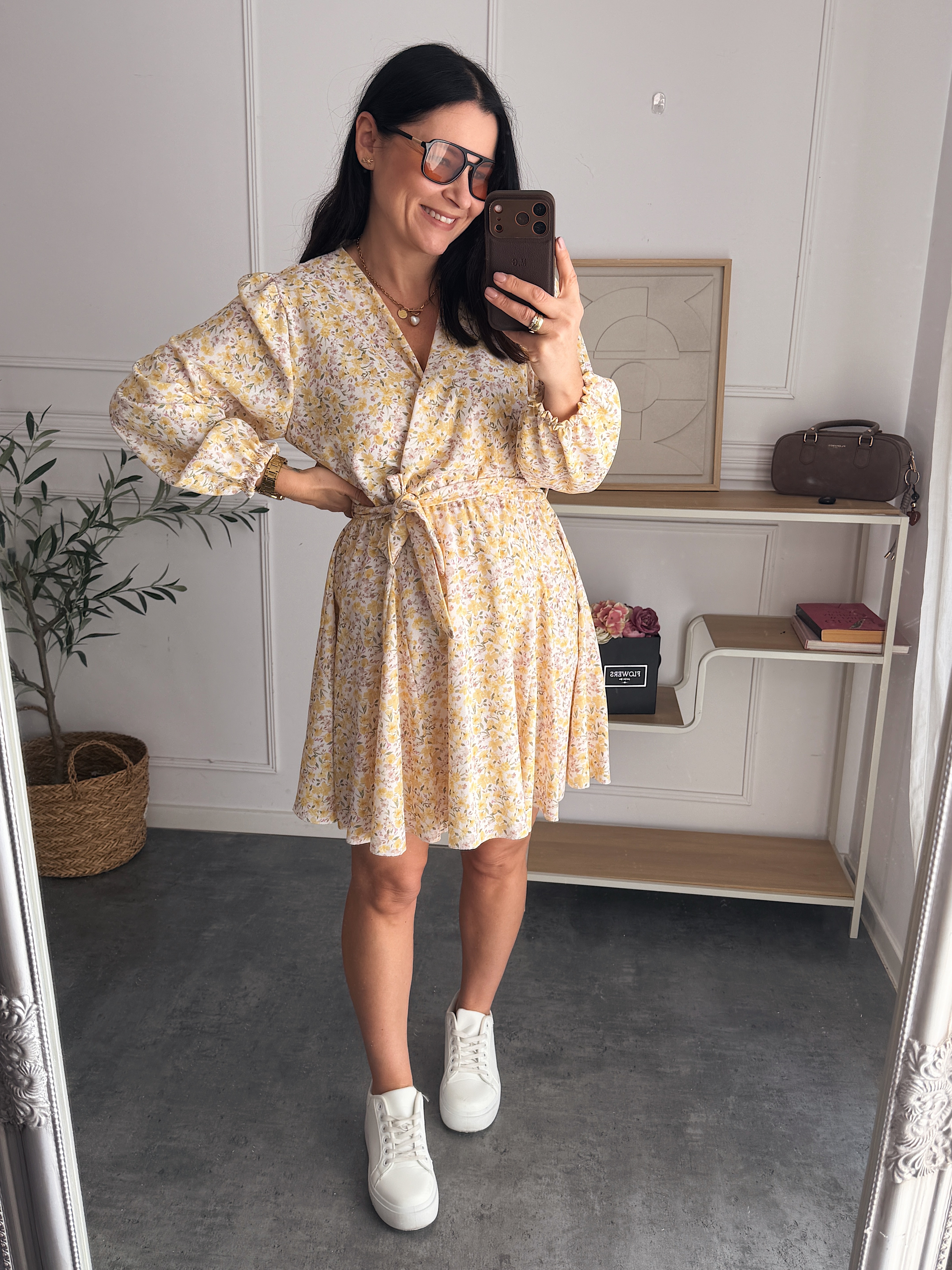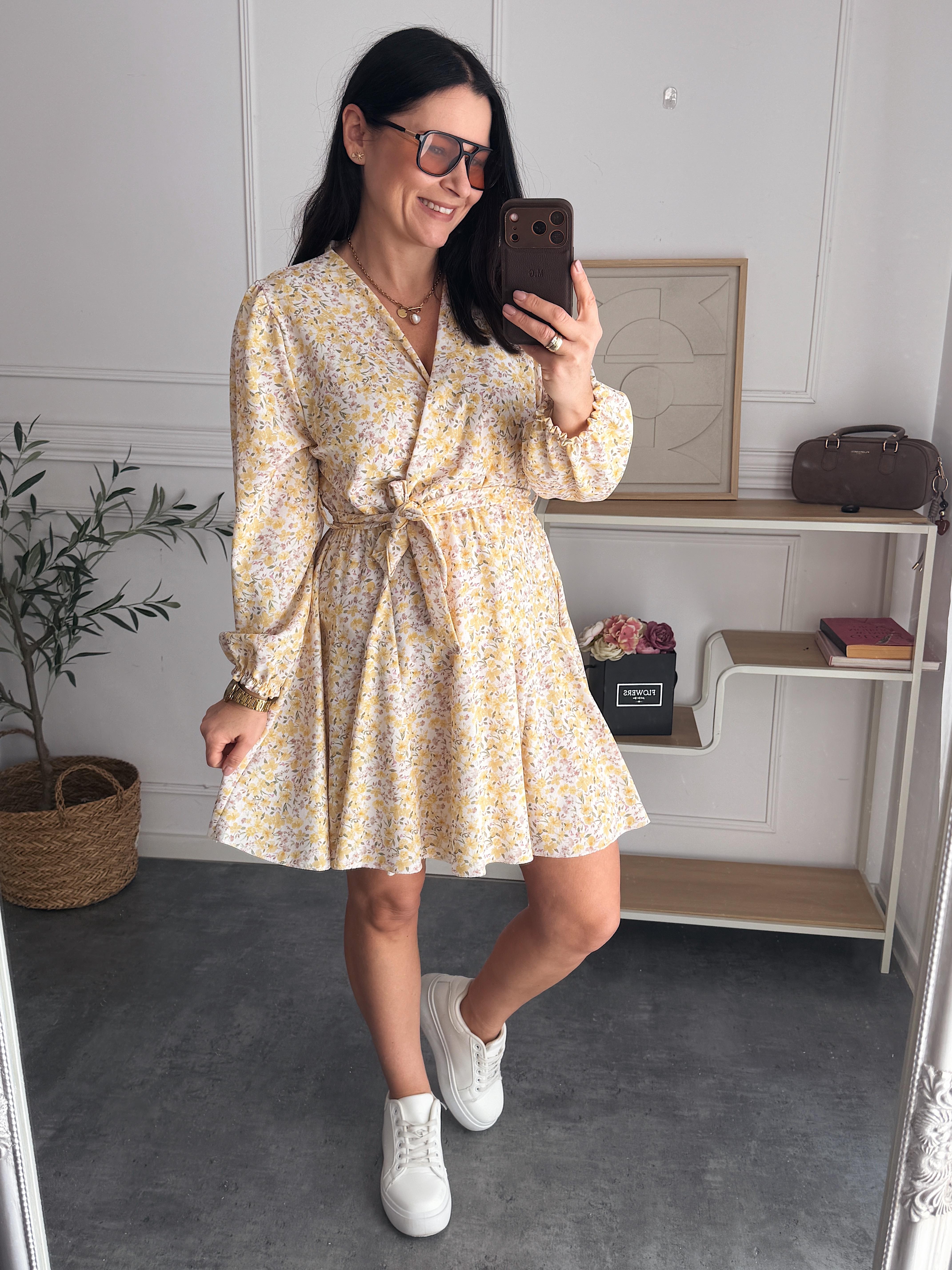 Sukienka Laura Zółto-Beżowe Kwiatuszki